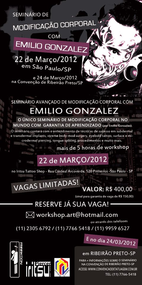 O venezuelano Emilio Gonzalez retorna ao Brasil em Março para realização de seminários que acontecerão em São Paulo (capital) e durante a convenção de tatuagem de Ribeirão Preto