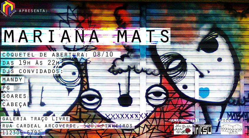 Há 7 anos vivendo o graffiti, Mariana Mats se sobrepõe pela irreverências de suas idéias projetadas pelas ruas de São Paulo. Assim, das ruas para a galeria a artista expressa sua paixão através das várias formas de se fazer street art.