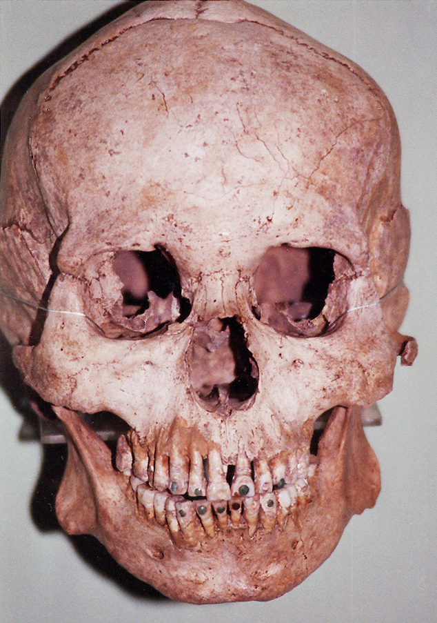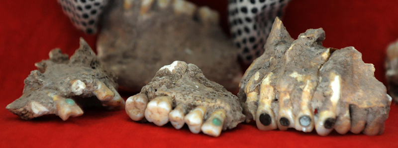 (Dentes incrustados com jade, Museu Copan, Honduras)