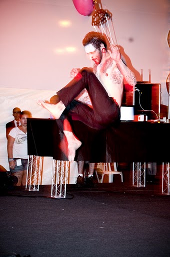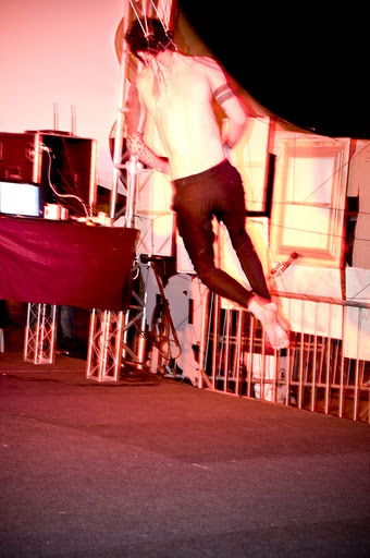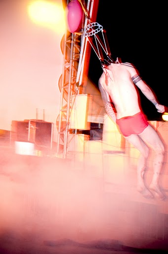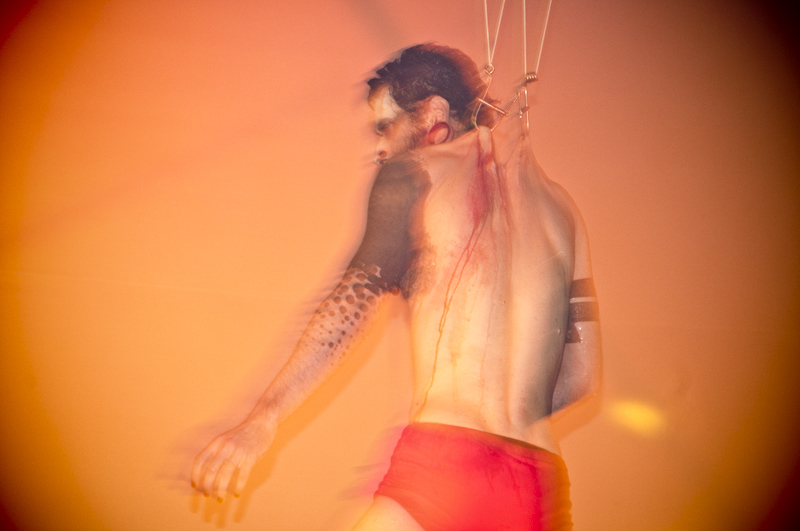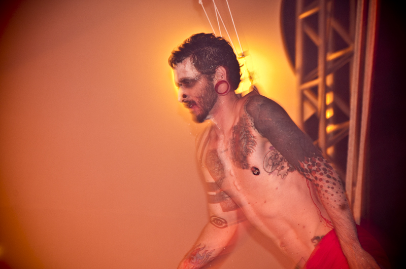 Falaremos agora daquilo que foi realizado e fez brilhar aquelas 24 horas de efervescência cultural. Passando um pouco das 22:00, subia ao palco o performer T. Angel com seu trabalho “Burn Burn”, uma discussão sobre a fadiga das velhas teorias que ainda nos contam e sustentam a nossa sociedade. Da terra, ao fogo e não demorou para chegar a água e por fim ganhar o ar, com um corpo contorcido sustentado por ganchos. O público vibrou!