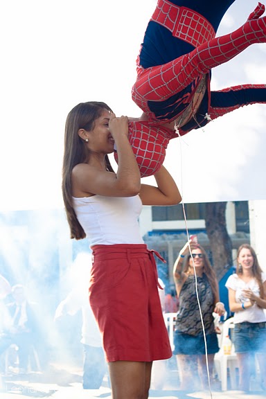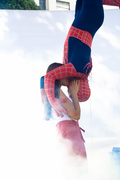 Trazendo um pouco de humor ao palco, Enzo Sato vestido de Spider Man, brincou suspenso no ar e inverteu sua posição inicial, como se estivesse sentado, apenas para os joelhos. Tão logo a clássica cena do beijo de ponta cabeça foi reproduzida por Enzo e sua namorada.