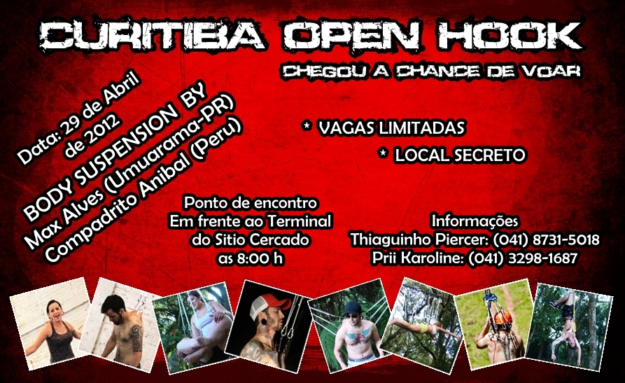 Os eventos de suspensão corporal não param de acontecer pelo Brasil afora. Em outra ocasião já falamos por aqui do Open Hook, que agora vai ter uma edição na cidade de Curitiba, com a organização de Thiaguinho Piercer e Prii Karoline.