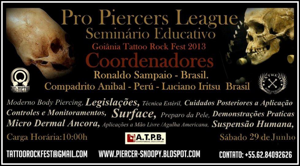 Os piercers também podem esperar por coisa boa. Acontecerá no dia 29/06 o seminário educativo Pro Piercers League, com a coordenação de Compadrito Anibal e Luciano Iritsu.