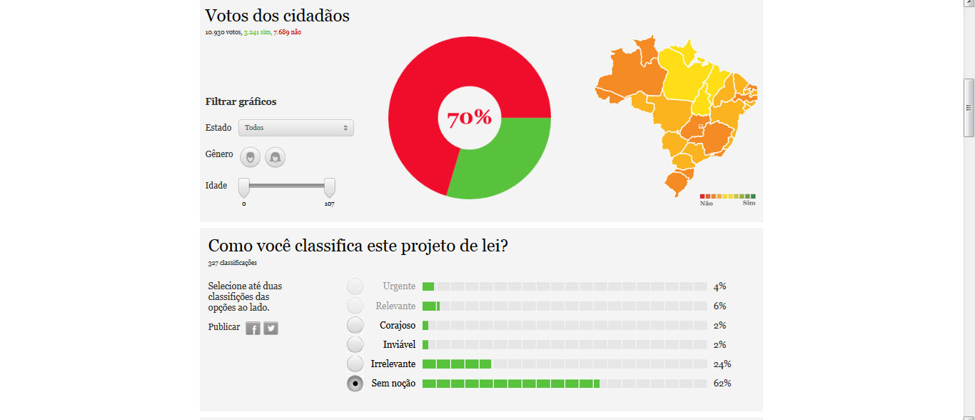 No site Vote na Web, 70% é contra o projeto de lei e considera o projeto de lei como sem noção.