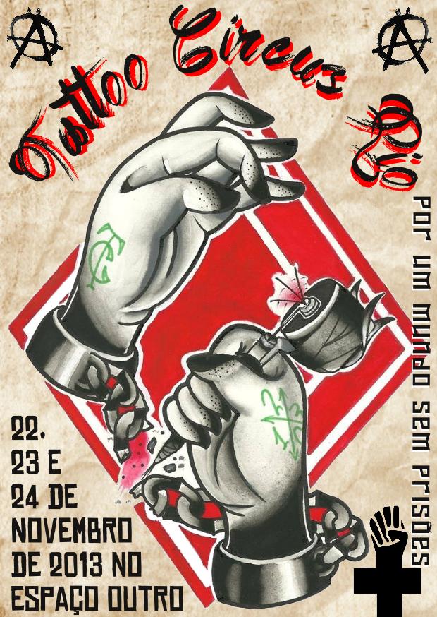 Nos dias 22, 23 e 24 de Novembro vai acontecer o I Tattoo Circus do Rio, um festival de tatuagem com artistas do Brasil todo em que parte da grana arrecadada vai para ajudar na libertação dxs presxs políticos.