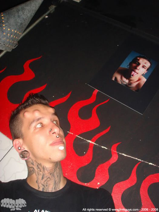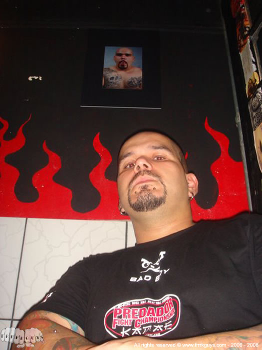 Logo na entrada recebendo os convidados, estava o Frrrk Guy Hellvis, um dos modelos mais acessado do site Frrrk Guy.