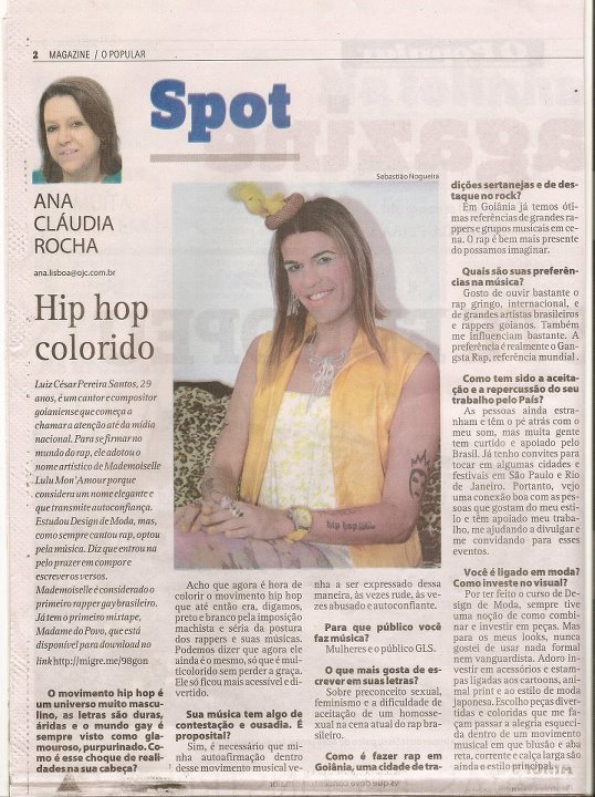 T. Angel: Em uma matéria recentemente publicada em um jornal goiano, você foi classificada como “o primeiro rapper gay brasileiro”. Já lemos em outras publicações que você é “a primeira rapper travesti”, como exemplo a que saiu na Folha. No Soundcloud há uma apresentação sua como “a primeira rapper gay”, tudo usado no feminino o que sugere uma transição de gênero. A pergunta que não quer calar é: o que a Mademoiselle é?