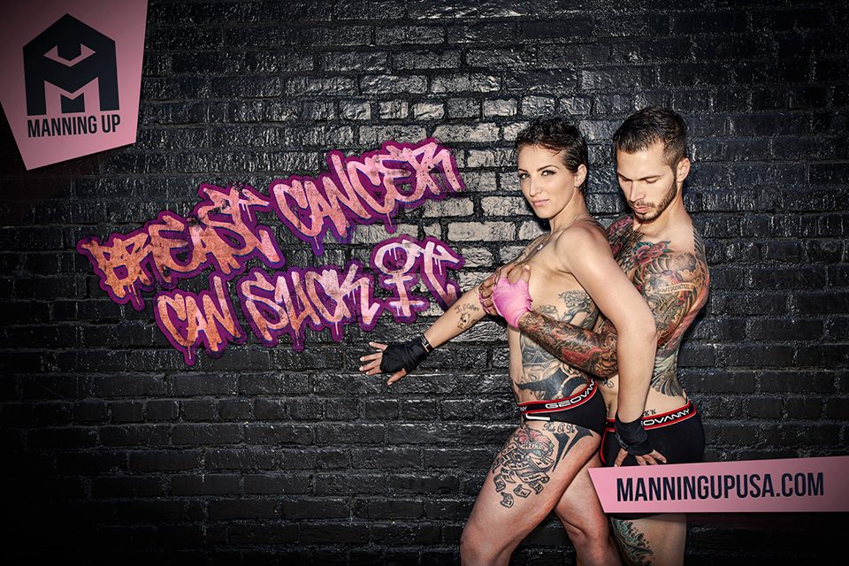 A norte-americana Manning Up lançou essa semana uma bela campanha contra o câncer de mama. O título recebido foi “Breast cancer can suck it” e conta com os modelos Alex Minsky e Mylee Yc, que por sinal estão lindos e esbanjando sensualidade.