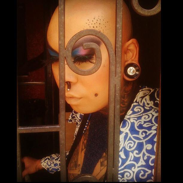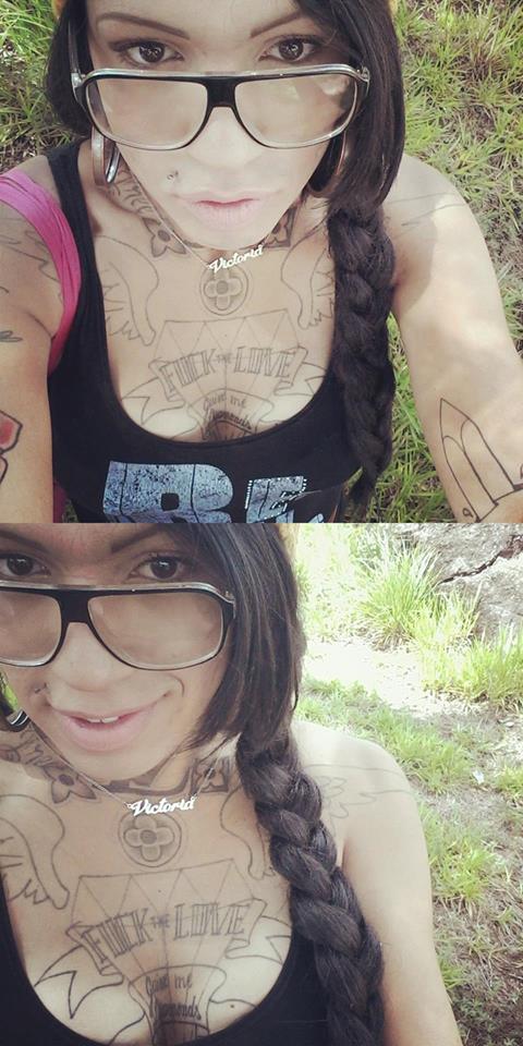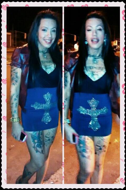 Vick: Sou bem tatuada, parei de contar na vigésima segunda tatuagem, incluindo rosto. Já tive alargador de 10 milímetros no septo e 60 nas orelhas, hoje em dia não uso mais devido ao preconceito em excesso. Se uma trans por si só destrói o psicológico do ser humano, imaginem uma trans freak (risos), amo essa parada, adoro ser diferente da maioria das trans, pois cheguei em um nível que possuía tanta informação, e tinha tanta coisa pra falar desde muito cedo, que comecei usar meu corpo como manifesto de ideias.