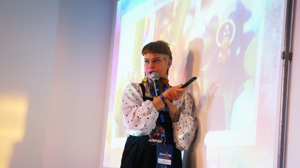 Na sequência, a conversa mudou da técnica para ética. Atendimento da população LGBTQIA+ em estúdios/clínicas de piercing foi a intervenção feita por T. Angel, que é professora da rede pública, especialista em educação inclusiva e pesquisadora sobre modificações corporais. Momento para se discutir sobre LGBTQfobias e, principalmente, atuar na capacitação de profissionais e na construção de ambientes seguros para todas as pessoas.