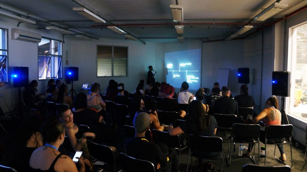 Na sequência tivemos a intervenção Imagem nas redes sociais e criação de conteúdo com a jornalista Eliza Trindade que é editora-chefe da Revista Piercer Life e especialista em Marketing Digital. Conversas sobre como fazer bom uso das redes sociais buscavam colaborar com os trabalhos das e dos profissionais presentes.