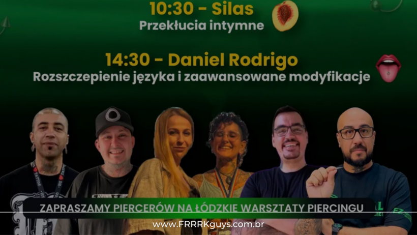 Workshop de piercing em Lodz – 2026, em sua 3ª edição, terá em sua programação os seguintes nomes e temas de aula: