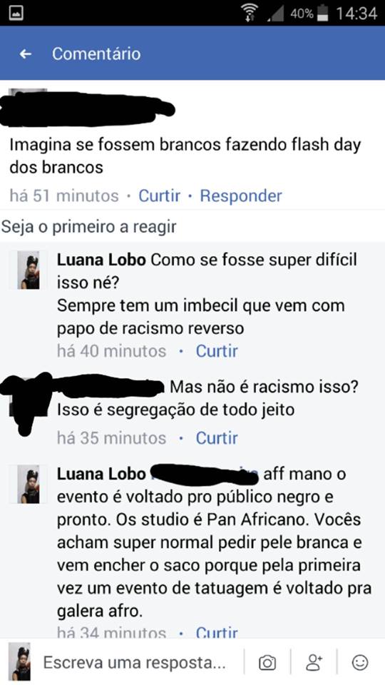 É curioso assistir esses tipos de apontamentos. Ficamos a pensar, onde estavam essas pessoas que apontam racismo reverso agora quando por anos os profissionais da tatuagem buscavam exclusivamente pele brancas, quando as revistas de tatuagem só exibiam em suas capas corpos brancos e os portfólios desses profissionais eram igualmente compostos apenas por peles brancas? Onde é que essa gente estava? Muito provavelmente estavam a desfrutar os privilégios de serem brancos em um país onde ser uma pessoa negra é ainda andar com um alvo apontado na nuca 24 horas por dia.