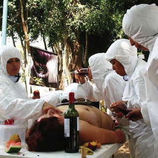 Performance via vídeo-conferência em que o performer com uma bomba-relógio projetada no peito aguarda mensagens via celular que justifiquem “porque viver?”